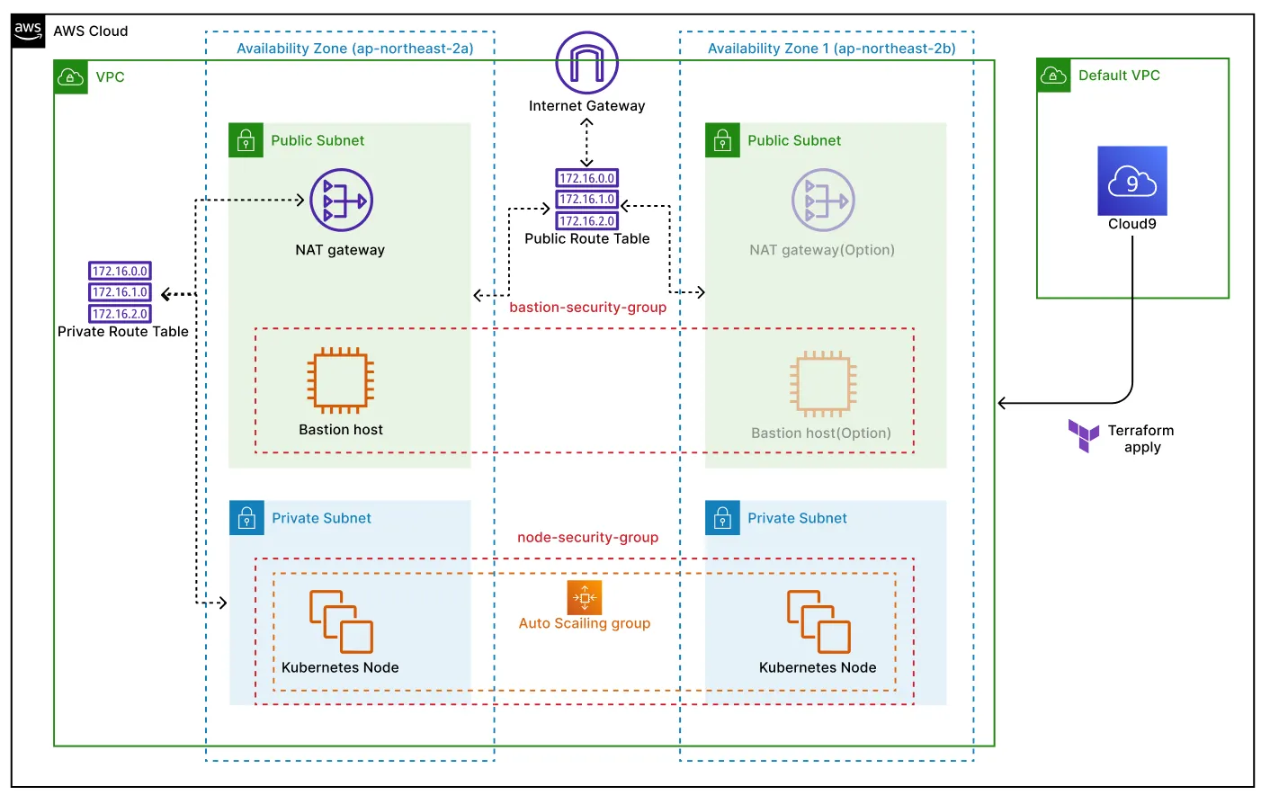 AWS Cloud9에서 Terraform을 사용하여 AWS VPC, Subnet, Security Group, EKS를 생성하는 방법
