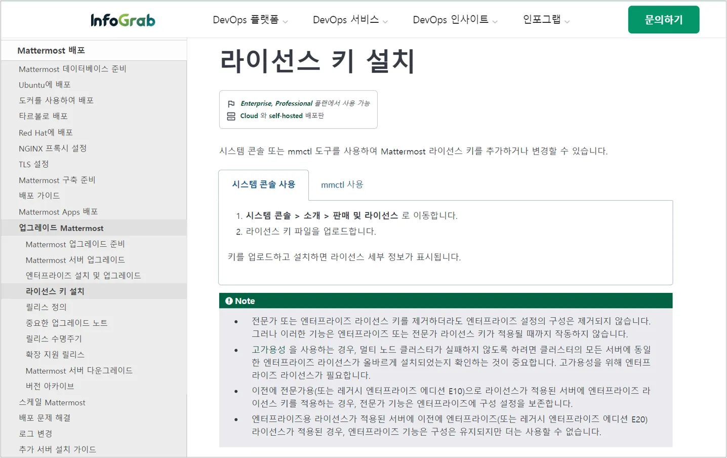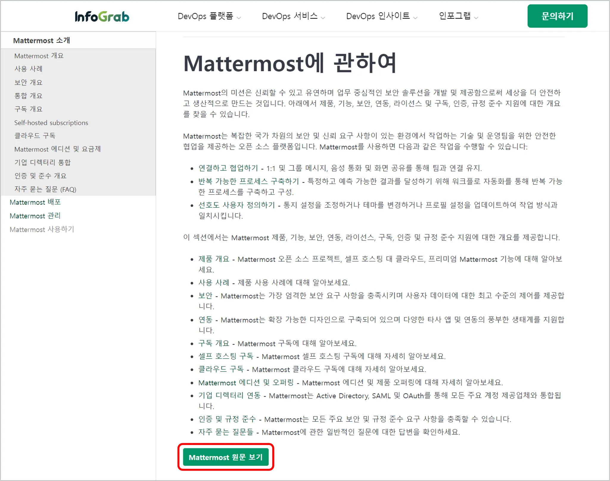 이렇게 Mattermost 공식 기술 문서 한글판 by 인포그랩 서비스를 둘러보았는데요.