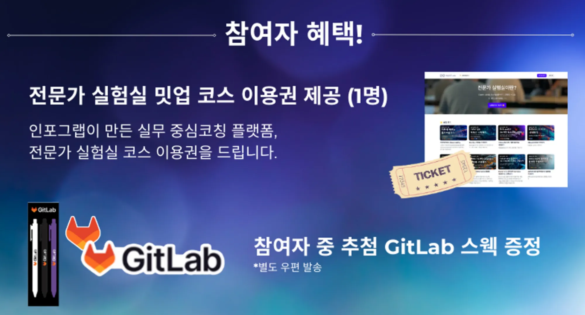 참여자 중 추첨을 통해 GitLab 스웩을 드리며, 우편으로 별도 발송 드립니다.