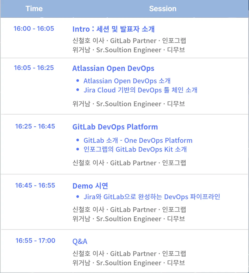 Atlassian의 플래티넘 솔루션 파트너인 디무브와 GitLab의 최고등급 파트너 인포그랩이 함께 합니다.