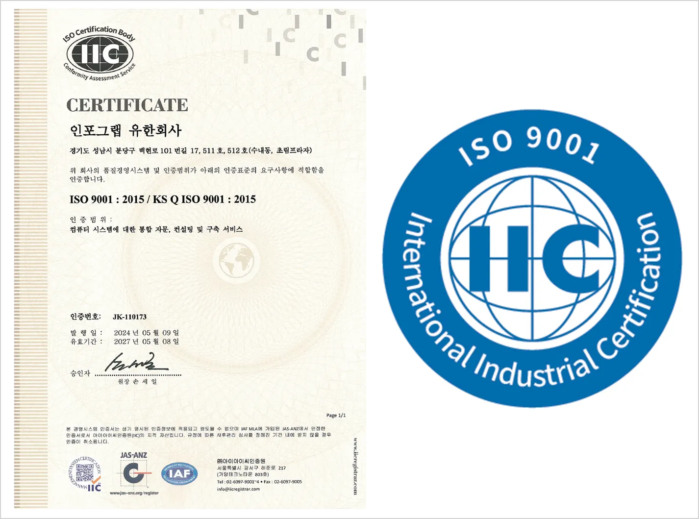인포그랩이 “ISO 경영 시스템 인증”을 획득했습니다!