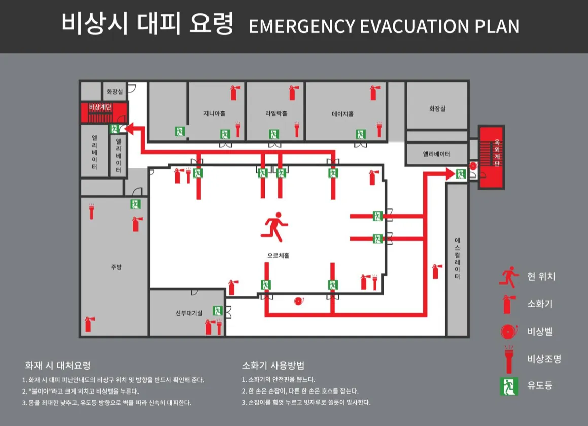 비상시 대피요령을 참조하여 주십시오.